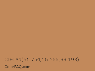 CIELab 61.754,16.566,33.193 Color is a normal orange color and the nearest color is Deer #ba8759. Hex code #c2895b and RGB value is rgb(194,137,91). In RGB color space, this color is composed of 76% red, 54% green, 36% blue, In CMYK color space, this color is composed of 0% cyan, 29% magenta, 53% yellow , 24% black , In HSL color space, this color has a hue angle of 27° , 46% saturation and 56% lightness.