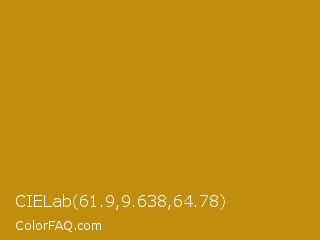 CIELab 61.9,9.638,64.78 Color is a normal orange color and the nearest color is Dark Goldenrod #b8860b. Hex code #c08d0d and RGB value is rgb(192,141,13). In RGB color space, this color is composed of 75% red, 55% green, 5% blue, In CMYK color space, this color is composed of 0% cyan, 27% magenta, 93% yellow , 25% black , In HSL color space, this color has a hue angle of 43° , 87% saturation and 40% lightness.