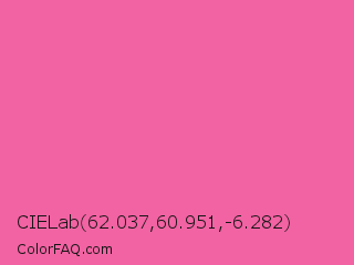 CIELab 62.037,60.951,-6.282 Color is a light rose color and the nearest color is Cyclamen #f56fa1. Hex code #f263a3 and RGB value is rgb(242,99,163). In RGB color space, this color is composed of 95% red, 39% green, 64% blue, In CMYK color space, this color is composed of 0% cyan, 59% magenta, 33% yellow , 5% black , In HSL color space, this color has a hue angle of 333° , 85% saturation and 67% lightness.