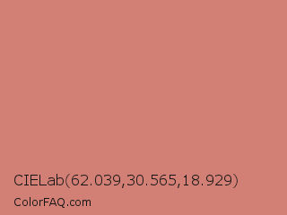 CIELab 62.039,30.565,18.929 Color is a light red color and the nearest color is New York Pink #d7837f. Hex code #d28076 and RGB value is rgb(210,128,118). In RGB color space, this color is composed of 82% red, 50% green, 46% blue, In CMYK color space, this color is composed of 0% cyan, 39% magenta, 44% yellow , 18% black , In HSL color space, this color has a hue angle of 7° , 51% saturation and 64% lightness.