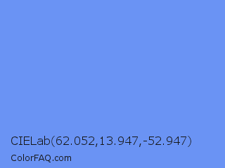 CIELab 62.052,13.947,-52.947 Color is a light blue color and the nearest color is Cornflower Blue #6495ed. Hex code #6a93f4 and RGB value is rgb(106,147,244). In RGB color space, this color is composed of 42% red, 58% green, 96% blue, In CMYK color space, this color is composed of 57% cyan, 40% magenta, 0% yellow , 4% black , In HSL color space, this color has a hue angle of 222° , 86% saturation and 69% lightness.