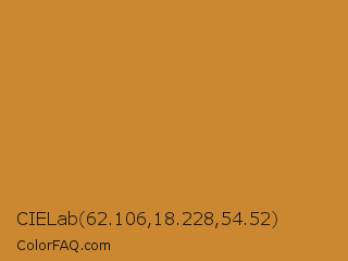 CIELab 62.106,18.228,54.52 Color is a normal orange color and the nearest color is Brandy Punch #cd8429. Hex code #cb8831 and RGB value is rgb(203,136,49). In RGB color space, this color is composed of 80% red, 53% green, 19% blue, In CMYK color space, this color is composed of 0% cyan, 33% magenta, 76% yellow , 20% black , In HSL color space, this color has a hue angle of 34° , 61% saturation and 49% lightness.