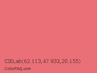 CIELab 62.113,47.933,20.155 Color is a light red color and the nearest color is Candy Pink #e4717a. Hex code #eb7075 and RGB value is rgb(235,112,117). In RGB color space, this color is composed of 92% red, 44% green, 46% blue, In CMYK color space, this color is composed of 0% cyan, 52% magenta, 50% yellow , 8% black , In HSL color space, this color has a hue angle of 358° , 75% saturation and 68% lightness.