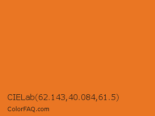 CIELab 62.143,40.084,61.5 Color is a normal orange color and the nearest color is Vivid Tangelo #f07427. Hex code #ea7623 and RGB value is rgb(234,118,35). In RGB color space, this color is composed of 92% red, 46% green, 14% blue, In CMYK color space, this color is composed of 0% cyan, 50% magenta, 85% yellow , 8% black , In HSL color space, this color has a hue angle of 25° , 83% saturation and 53% lightness.