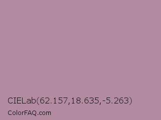 CIELab 62.157,18.635,-5.263 Color is a light rose color and the nearest color is Opera Mauve #b784a7. Hex code #b38ba0 and RGB value is rgb(179,139,160). In RGB color space, this color is composed of 70% red, 55% green, 63% blue, In CMYK color space, this color is composed of 0% cyan, 22% magenta, 11% yellow , 30% black , In HSL color space, this color has a hue angle of 329° , 21% saturation and 62% lightness.