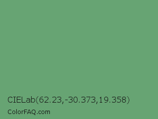 CIELab 62.23,-30.373,19.358 Color is a normal green color and the nearest color is Aqua Forest #5fa777. Hex code #67a473 and RGB value is rgb(103,164,115). In RGB color space, this color is composed of 40% red, 64% green, 45% blue, In CMYK color space, this color is composed of 37% cyan, 0% magenta, 30% yellow , 36% black , In HSL color space, this color has a hue angle of 132° , 25% saturation and 52% lightness.