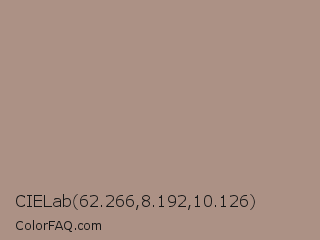 CIELab 62.266,8.192,10.126 Color is a normal orange color and the nearest color is Grullo #a99a86. Hex code #ac9185 and RGB value is rgb(172,145,133). In RGB color space, this color is composed of 67% red, 57% green, 52% blue, In CMYK color space, this color is composed of 0% cyan, 16% magenta, 23% yellow , 33% black , In HSL color space, this color has a hue angle of 18° , 19% saturation and 60% lightness.