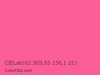 CIELab 62.303,65.156,1.21 Color is a light rose color and the nearest color is Strawberry #fc5a8d. Hex code #fc5d97 and RGB value is rgb(252,93,151). In RGB color space, this color is composed of 99% red, 36% green, 59% blue, In CMYK color space, this color is composed of 0% cyan, 63% magenta, 40% yellow , 1% black , In HSL color space, this color has a hue angle of 338° , 96% saturation and 68% lightness.
