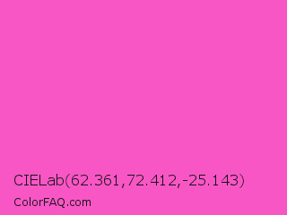 CIELab 62.361,72.412,-25.143 Color is a light magenta color and the nearest color is Light Deep Pink #ff5ccd. Hex code #f956c5 and RGB value is rgb(249,86,197). In RGB color space, this color is composed of 98% red, 34% green, 77% blue, In CMYK color space, this color is composed of 0% cyan, 65% magenta, 21% yellow , 2% black , In HSL color space, this color has a hue angle of 319° , 93% saturation and 66% lightness.