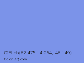 CIELab 62.475,14.264,-46.149 Color is a light blue color and the nearest color is Vista Blue #7c9ed9. Hex code #7b93e9 and RGB value is rgb(123,147,233). In RGB color space, this color is composed of 48% red, 58% green, 91% blue, In CMYK color space, this color is composed of 47% cyan, 37% magenta, 0% yellow , 9% black , In HSL color space, this color has a hue angle of 227° , 71% saturation and 70% lightness.