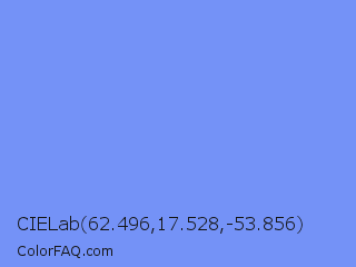 CIELab 62.496,17.528,-53.856 Color is a light blue color and the nearest color is Cornflower Blue #6495ed. Hex code #7492f7 and RGB value is rgb(116,146,247). In RGB color space, this color is composed of 45% red, 57% green, 97% blue, In CMYK color space, this color is composed of 53% cyan, 41% magenta, 0% yellow , 3% black , In HSL color space, this color has a hue angle of 226° , 89% saturation and 71% lightness.