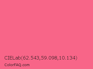 CIELab 62.543,59.098,10.134 Color is a light red color and the nearest color is Ultra Red #fc6c85. Hex code #f86588 and RGB value is rgb(248,101,136). In RGB color space, this color is composed of 97% red, 40% green, 53% blue, In CMYK color space, this color is composed of 0% cyan, 59% magenta, 45% yellow , 3% black , In HSL color space, this color has a hue angle of 346° , 91% saturation and 68% lightness.