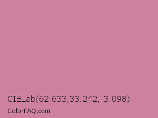 CIELab 62.633,33.242,-3.098 Color is a light rose color and the nearest color is Puce #cc8899. Hex code #cd819e and RGB value is rgb(205,129,158). In RGB color space, this color is composed of 80% red, 51% green, 62% blue, In CMYK color space, this color is composed of 0% cyan, 37% magenta, 23% yellow , 20% black , In HSL color space, this color has a hue angle of 337° , 43% saturation and 65% lightness.