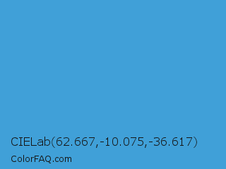 CIELab 62.667,-10.075,-36.617 Color is a normal blue color and the nearest color is Celestial Blue #4997d0. Hex code #40a0d8 and RGB value is rgb(64,160,216). In RGB color space, this color is composed of 25% red, 63% green, 85% blue, In CMYK color space, this color is composed of 70% cyan, 26% magenta, 0% yellow , 15% black , In HSL color space, this color has a hue angle of 202° , 66% saturation and 55% lightness.