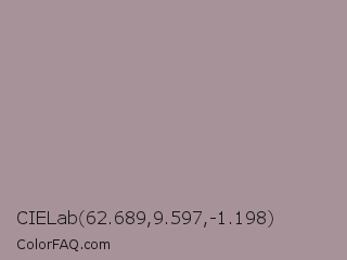 CIELab 62.689,9.597,-1.198 Color is a light rose color and the nearest color is Dusty Gray #a8989b. Hex code #a8929a and RGB value is rgb(168,146,154). In RGB color space, this color is composed of 66% red, 57% green, 60% blue, In CMYK color space, this color is composed of 0% cyan, 13% magenta, 8% yellow , 34% black , In HSL color space, this color has a hue angle of 338° , 11% saturation and 62% lightness.