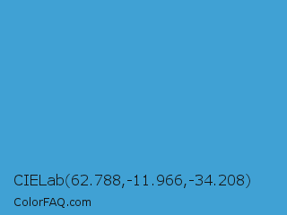 CIELab 62.788,-11.966,-34.208 Color is a normal blue color and the nearest color is Celestial Blue #4997d0. Hex code #40a1d4 and RGB value is rgb(64,161,212). In RGB color space, this color is composed of 25% red, 63% green, 83% blue, In CMYK color space, this color is composed of 70% cyan, 24% magenta, 0% yellow , 17% black , In HSL color space, this color has a hue angle of 201° , 63% saturation and 54% lightness.