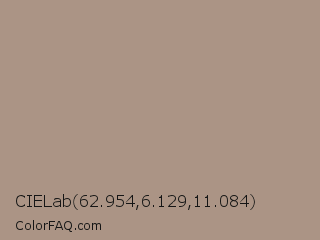 CIELab 62.954,6.129,11.084 Color is a normal orange color and the nearest color is Grullo #a99a86. Hex code #ab9485 and RGB value is rgb(171,148,133). In RGB color space, this color is composed of 67% red, 58% green, 52% blue, In CMYK color space, this color is composed of 0% cyan, 13% magenta, 22% yellow , 33% black , In HSL color space, this color has a hue angle of 24° , 18% saturation and 60% lightness.