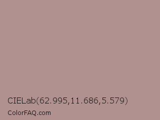 CIELab 62.995,11.686,5.579 Color is a light red color and the nearest color is Del Rio #b09a95. Hex code #b1918f and RGB value is rgb(177,145,143). In RGB color space, this color is composed of 69% red, 57% green, 56% blue, In CMYK color space, this color is composed of 0% cyan, 18% magenta, 19% yellow , 31% black , In HSL color space, this color has a hue angle of 4° , 18% saturation and 63% lightness.