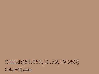 CIELab 63.053,10.62,19.253 Color is a normal orange color and the nearest color is Pale Taupe #bc987e. Hex code #b79177 and RGB value is rgb(183,145,119). In RGB color space, this color is composed of 72% red, 57% green, 47% blue, In CMYK color space, this color is composed of 0% cyan, 21% magenta, 35% yellow , 28% black , In HSL color space, this color has a hue angle of 24° , 31% saturation and 59% lightness.