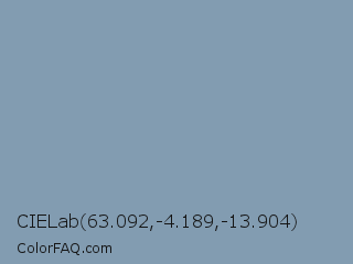 CIELab 63.092,-4.189,-13.904 Color is a normal blue color and the nearest color is Bali Hai #859faf. Hex code #829cb1 and RGB value is rgb(130,156,177). In RGB color space, this color is composed of 51% red, 61% green, 69% blue, In CMYK color space, this color is composed of 27% cyan, 12% magenta, 0% yellow , 31% black , In HSL color space, this color has a hue angle of 207° , 23% saturation and 60% lightness.