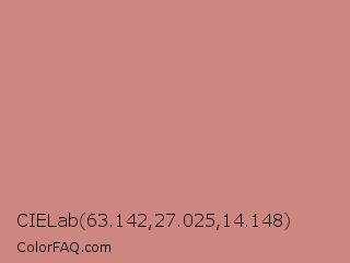 CIELab 63.142,27.025,14.148 Color is a light red color and the nearest color is New York Pink #d7837f. Hex code #ce8681 and RGB value is rgb(206,134,129). In RGB color space, this color is composed of 81% red, 53% green, 51% blue, In CMYK color space, this color is composed of 0% cyan, 35% magenta, 37% yellow , 19% black , In HSL color space, this color has a hue angle of 4° , 44% saturation and 66% lightness.