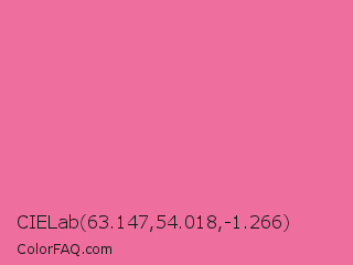 CIELab 63.147,54.018,-1.266 Color is a light rose color and the nearest color is Cyclamen #f56fa1. Hex code #ee6e9d and RGB value is rgb(238,110,157). In RGB color space, this color is composed of 93% red, 43% green, 62% blue, In CMYK color space, this color is composed of 0% cyan, 54% magenta, 34% yellow , 7% black , In HSL color space, this color has a hue angle of 338° , 79% saturation and 68% lightness.