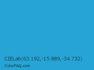 CIELab 63.192,-15.889,-34.732 Color is a normal blue color and the nearest color is Battery Charged Blue #1dacd6. Hex code #26a4d6 and RGB value is rgb(38,164,214). In RGB color space, this color is composed of 15% red, 64% green, 84% blue, In CMYK color space, this color is composed of 82% cyan, 23% magenta, 0% yellow , 16% black , In HSL color space, this color has a hue angle of 197° , 70% saturation and 49% lightness.
