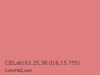 CIELab 63.25,38.018,15.755 Color is a light red color and the nearest color is New York Pink #d7837f. Hex code #df7d7f and RGB value is rgb(223,125,127). In RGB color space, this color is composed of 87% red, 49% green, 50% blue, In CMYK color space, this color is composed of 0% cyan, 44% magenta, 43% yellow , 13% black , In HSL color space, this color has a hue angle of 359° , 60% saturation and 68% lightness.