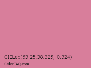 CIELab 63.25,38.325,-0.324 Color is a light rose color and the nearest color is Shimmering Blush #d98695. Hex code #d87e9b and RGB value is rgb(216,126,155). In RGB color space, this color is composed of 85% red, 49% green, 61% blue, In CMYK color space, this color is composed of 0% cyan, 42% magenta, 28% yellow , 15% black , In HSL color space, this color has a hue angle of 341° , 54% saturation and 67% lightness.