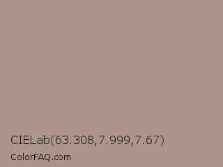 CIELab 63.308,7.999,7.67 Color is a light color and the nearest color is Grullo #a99a86. Hex code #ad948c and RGB value is rgb(173,148,140). In RGB color space, this color is composed of 68% red, 58% green, 55% blue, In CMYK color space, this color is composed of 0% cyan, 14% magenta, 19% yellow , 32% black , In HSL color space, this color has a hue angle of 15° , 17% saturation and 61% lightness.