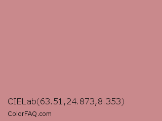 CIELab 63.51,24.873,8.353 Color is a light red color and the nearest color is Oriental Pink #c69191. Hex code #c9898c and RGB value is rgb(201,137,140). In RGB color space, this color is composed of 79% red, 54% green, 55% blue, In CMYK color space, this color is composed of 0% cyan, 32% magenta, 30% yellow , 21% black , In HSL color space, this color has a hue angle of 357° , 37% saturation and 66% lightness.