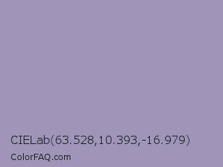 CIELab 63.528,10.393,-16.979 Color is a light indigo color and the nearest color is Amethyst Smoke #a397b4. Hex code #9e95b8 and RGB value is rgb(158,149,184). In RGB color space, this color is composed of 62% red, 58% green, 72% blue, In CMYK color space, this color is composed of 14% cyan, 19% magenta, 0% yellow , 28% black , In HSL color space, this color has a hue angle of 255° , 20% saturation and 65% lightness.