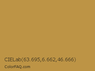 CIELab 63.695,6.662,46.666 Color is a normal orange color and the nearest color is Tussock #c5994b. Hex code #bd9445 and RGB value is rgb(189,148,69). In RGB color space, this color is composed of 74% red, 58% green, 27% blue, In CMYK color space, this color is composed of 0% cyan, 22% magenta, 63% yellow , 26% black , In HSL color space, this color has a hue angle of 40° , 48% saturation and 51% lightness.