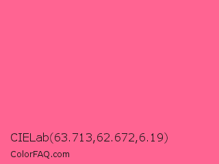 CIELab 63.713,62.672,6.19 Color is a light rose color and the nearest color is Light Crimson #f56991. Hex code #ff6492 and RGB value is rgb(255,100,146). In RGB color space, this color is composed of 100% red, 39% green, 57% blue, In CMYK color space, this color is composed of 0% cyan, 61% magenta, 43% yellow , 0% black , In HSL color space, this color has a hue angle of 342° , 100% saturation and 70% lightness.