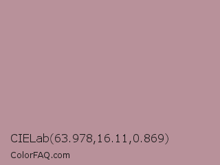 CIELab 63.978,16.11,0.869 Color is a light red color and the nearest color is Tuscany #c09999. Hex code #b8919a and RGB value is rgb(184,145,154). In RGB color space, this color is composed of 72% red, 57% green, 60% blue, In CMYK color space, this color is composed of 0% cyan, 21% magenta, 16% yellow , 28% black , In HSL color space, this color has a hue angle of 346° , 22% saturation and 65% lightness.