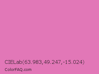 CIELab 63.983,49.247,-15.024 Color is a light magenta color and the nearest color is Middle Purple #d982b5. Hex code #e277b7 and RGB value is rgb(226,119,183). In RGB color space, this color is composed of 89% red, 47% green, 72% blue, In CMYK color space, this color is composed of 0% cyan, 47% magenta, 19% yellow , 11% black , In HSL color space, this color has a hue angle of 324° , 65% saturation and 68% lightness.
