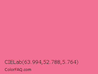 CIELab 63.994,52.788,5.764 Color is a light rose color and the nearest color is Light Crimson #f56991. Hex code #f27193 and RGB value is rgb(242,113,147). In RGB color space, this color is composed of 95% red, 44% green, 58% blue, In CMYK color space, this color is composed of 0% cyan, 53% magenta, 39% yellow , 5% black , In HSL color space, this color has a hue angle of 344° , 83% saturation and 70% lightness.