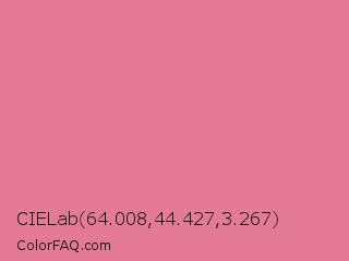 CIELab 64.008,44.427,3.267 Color is a light rose color and the nearest color is Bright Blush #e47698. Hex code #e57a97 and RGB value is rgb(229,122,151). In RGB color space, this color is composed of 90% red, 48% green, 59% blue, In CMYK color space, this color is composed of 0% cyan, 47% magenta, 34% yellow , 10% black , In HSL color space, this color has a hue angle of 344° , 67% saturation and 69% lightness.