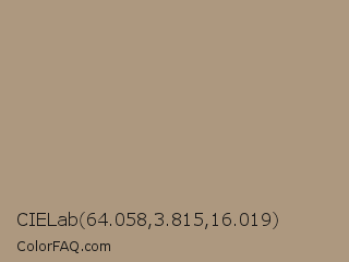 CIELab 64.058,3.815,16.019 Color is a normal orange color and the nearest color is Grullo #a99a86. Hex code #ad987f and RGB value is rgb(173,152,127). In RGB color space, this color is composed of 68% red, 60% green, 50% blue, In CMYK color space, this color is composed of 0% cyan, 12% magenta, 27% yellow , 32% black , In HSL color space, this color has a hue angle of 33° , 22% saturation and 59% lightness.