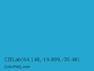 CIELab 64.148,-19.899,-30.48 Color is a normal blue color and the nearest color is Ball Blue #21abcd. Hex code #24a8d1 and RGB value is rgb(36,168,209). In RGB color space, this color is composed of 14% red, 66% green, 82% blue, In CMYK color space, this color is composed of 83% cyan, 20% magenta, 0% yellow , 18% black , In HSL color space, this color has a hue angle of 194° , 71% saturation and 48% lightness.