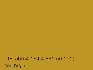 CIELab 64.184,4.881,60.151 Color is a normal orange color and the nearest color is Nugget #c59922. Hex code #bf9626 and RGB value is rgb(191,150,38). In RGB color space, this color is composed of 75% red, 59% green, 15% blue, In CMYK color space, this color is composed of 0% cyan, 21% magenta, 80% yellow , 25% black , In HSL color space, this color has a hue angle of 44° , 67% saturation and 45% lightness.