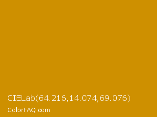 CIELab 64.216,14.074,69.076 Color is a normal orange color and the nearest color is Vivid Amber #cc9900. Hex code #ce9000 and RGB value is rgb(206,144,0). In RGB color space, this color is composed of 81% red, 56% green, 0% blue, In CMYK color space, this color is composed of 0% cyan, 30% magenta, 100% yellow , 19% black , In HSL color space, this color has a hue angle of 42° , 100% saturation and 40% lightness.