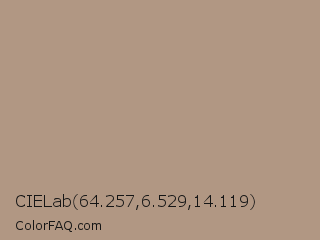 CIELab 64.257,6.529,14.119 Color is a normal orange color and the nearest color is Grullo #a99a86. Hex code #b19783 and RGB value is rgb(177,151,131). In RGB color space, this color is composed of 69% red, 59% green, 51% blue, In CMYK color space, this color is composed of 0% cyan, 15% magenta, 26% yellow , 31% black , In HSL color space, this color has a hue angle of 26° , 23% saturation and 60% lightness.