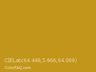 CIELab 64.449,5.866,64.069 Color is a normal orange color and the nearest color is Pizza #c99415. Hex code #c2961a and RGB value is rgb(194,150,26). In RGB color space, this color is composed of 76% red, 59% green, 10% blue, In CMYK color space, this color is composed of 0% cyan, 23% magenta, 87% yellow , 24% black , In HSL color space, this color has a hue angle of 44° , 76% saturation and 43% lightness.
