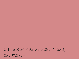 CIELab 64.493,29.208,11.623 Color is a light red color and the nearest color is My Pink #d69188. Hex code #d48889 and RGB value is rgb(212,136,137). In RGB color space, this color is composed of 83% red, 53% green, 54% blue, In CMYK color space, this color is composed of 0% cyan, 36% magenta, 35% yellow , 17% black , In HSL color space, this color has a hue angle of 359° , 47% saturation and 68% lightness.