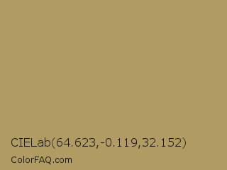 CIELab 64.623,-0.119,32.152 Color is a normal orange color and the nearest color is Teak #b19461. Hex code #b09b63 and RGB value is rgb(176,155,99). In RGB color space, this color is composed of 69% red, 61% green, 39% blue, In CMYK color space, this color is composed of 0% cyan, 12% magenta, 44% yellow , 31% black , In HSL color space, this color has a hue angle of 44° , 33% saturation and 54% lightness.