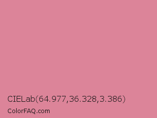CIELab 64.977,36.328,3.386 Color is a light red color and the nearest color is Shimmering Blush #d98695. Hex code #dc8499 and RGB value is rgb(220,132,153). In RGB color space, this color is composed of 86% red, 52% green, 60% blue, In CMYK color space, this color is composed of 0% cyan, 40% magenta, 30% yellow , 14% black , In HSL color space, this color has a hue angle of 346° , 56% saturation and 69% lightness.