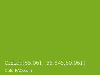 CIELab 65.061,-36.845,60.961 Color is a normal green color and the nearest color is Lima #76bd17. Hex code #7aad1f and RGB value is rgb(122,173,31). In RGB color space, this color is composed of 48% red, 68% green, 12% blue, In CMYK color space, this color is composed of 29% cyan, 0% magenta, 82% yellow , 32% black , In HSL color space, this color has a hue angle of 82° , 70% saturation and 40% lightness.