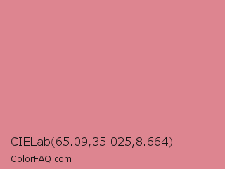 CIELab 65.09,35.025,8.664 Color is a light red color and the nearest color is Shimmering Blush #d98695. Hex code #dd8590 and RGB value is rgb(221,133,144). In RGB color space, this color is composed of 87% red, 52% green, 56% blue, In CMYK color space, this color is composed of 0% cyan, 40% magenta, 35% yellow , 13% black , In HSL color space, this color has a hue angle of 353° , 56% saturation and 69% lightness.