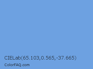 CIELab 65.103,0.565,-37.665 Color is a light blue color and the nearest color is Little Boy Blue #6ca0dc. Hex code #6da1e1 and RGB value is rgb(109,161,225). In RGB color space, this color is composed of 43% red, 63% green, 88% blue, In CMYK color space, this color is composed of 52% cyan, 28% magenta, 0% yellow , 12% black , In HSL color space, this color has a hue angle of 213° , 66% saturation and 65% lightness.
